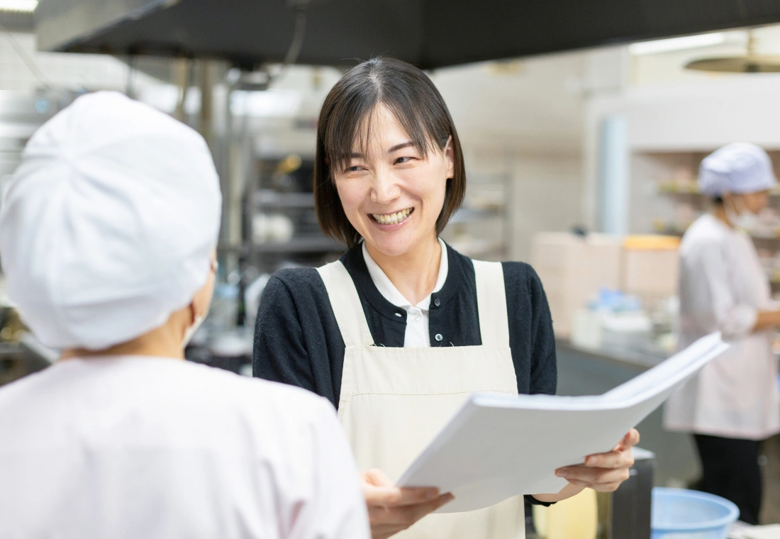 栄養士は、施設で提供する食事の献立作成や栄養管理を行う仕事です。利用者の年齢、健康状態、嚥下機能などに配慮しながら、安全でおいしく、食事が日々の楽しみとなるよう工夫しています。また、調理師と連携し、衛生管理や食材管理を徹底することで、安心できる食事提供を支えています。